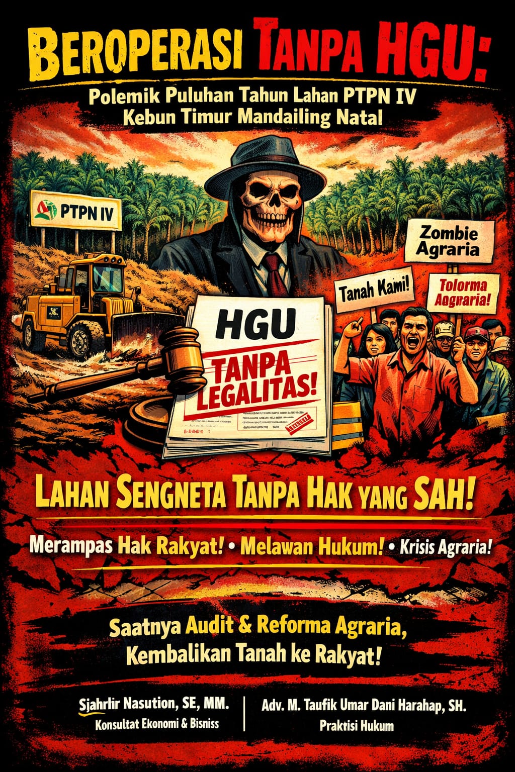 Fenomena dugaan “kematian” Hak Guna Usaha (HGU) di areal perkebunan milik PTPN IV Kebun Timur di Kecamatan Batahan, Kabupaten Mandailing Natal, bukan sekadar persoalan administratif, melainkan menyentuh inti krisis tata kelola agraria nasional. Ketika suatu entitas negara tetap menjalankan aktivitas ekonomi di atas tanah tanpa legalitas hak atas tanah yang sah, maka yang dipertaruhkan bukan hanya kepastian hukum, tetapi juga legitimasi negara dalam mengelola sumber daya agraria secara adil dan konstitusional.