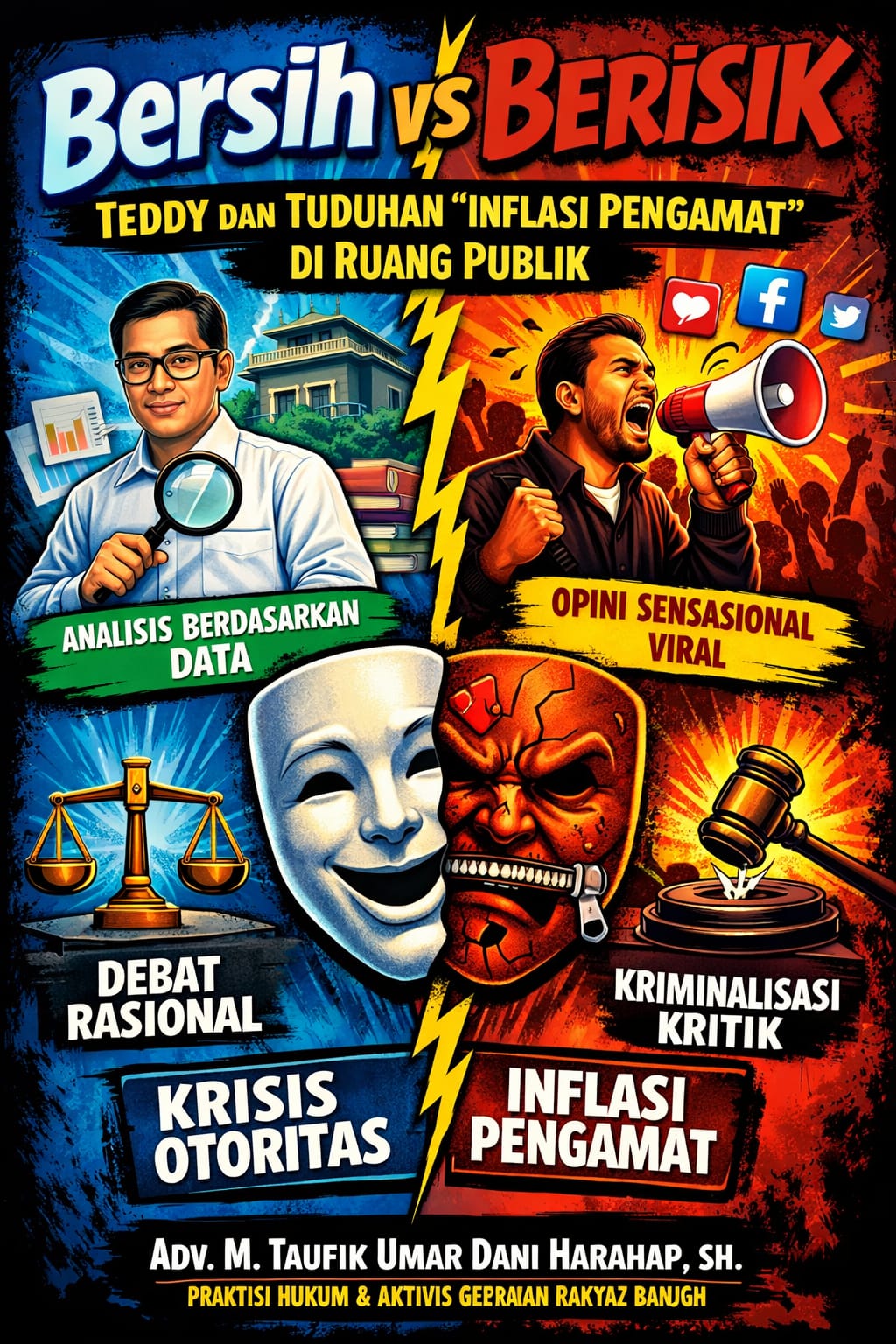 Fenomena yang disebut sebagai “inflasi pengamat” oleh Teddy Indra Wijaya sesungguhnya tidak dapat dibaca sekadar sebagai kritik spontan terhadap individu atau kelompok tertentu, melainkan harus ditempatkan dalam kerangka yang lebih luas: krisis otoritas pengetahuan dalam ruang publik demokrasi Indonesia. Di tengah derasnya arus informasi digital, batas antara otoritas ilmiah dan opini bebas kian kabur. Siapa pun dapat berbicara, tetapi tidak semua memiliki basis epistemik yang memadai. Dalam perspektif sosiologi pengetahuan, kondisi ini menyerupai apa yang pernah digambarkan sebagai erosi otoritas simbolik—ketika gelar, posisi, dan reputasi tidak lagi otomatis menjamin kualitas analisis. Ruang publik berubah menjadi arena yang riuh, tetapi tidak selalu jernih.