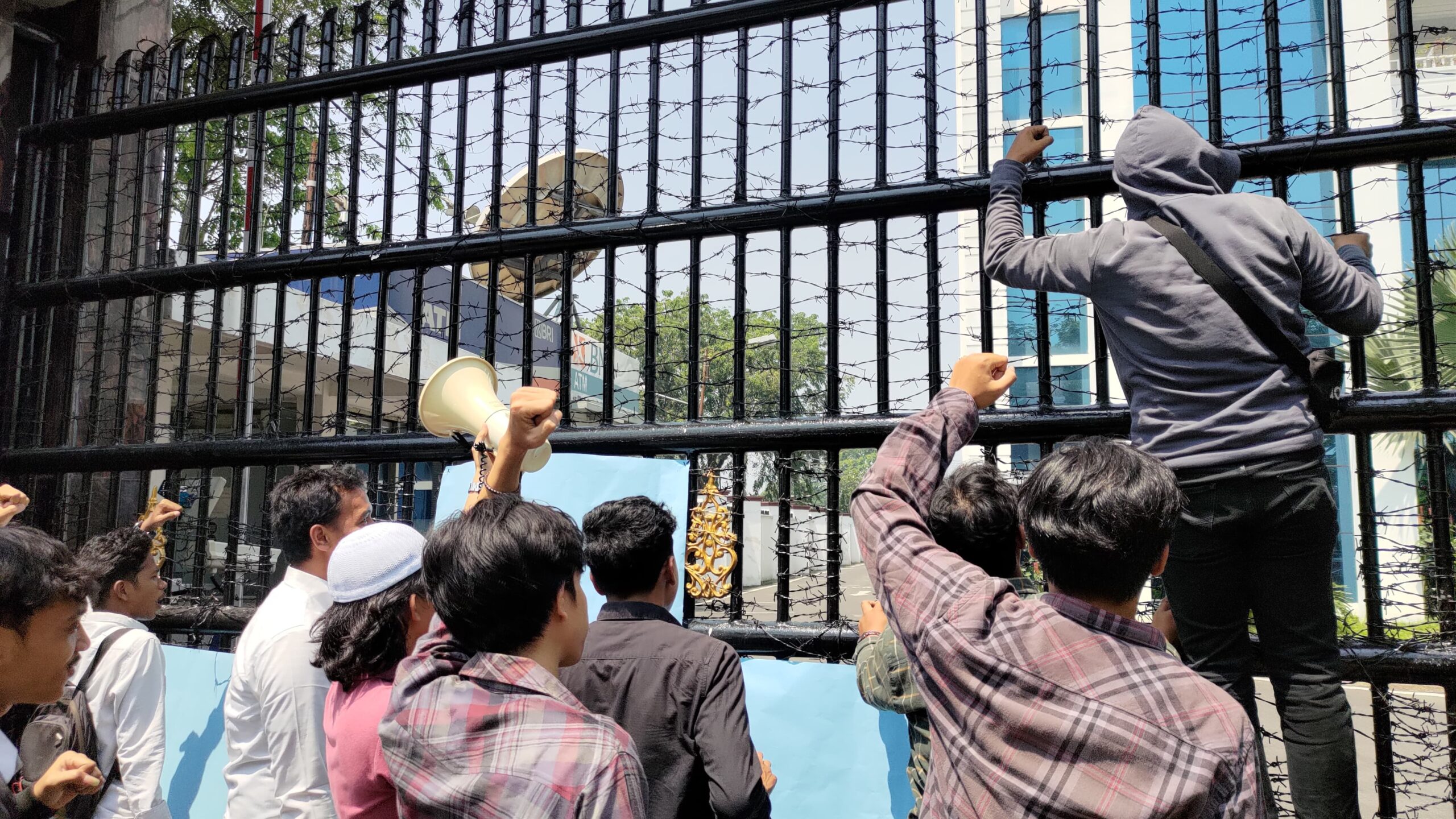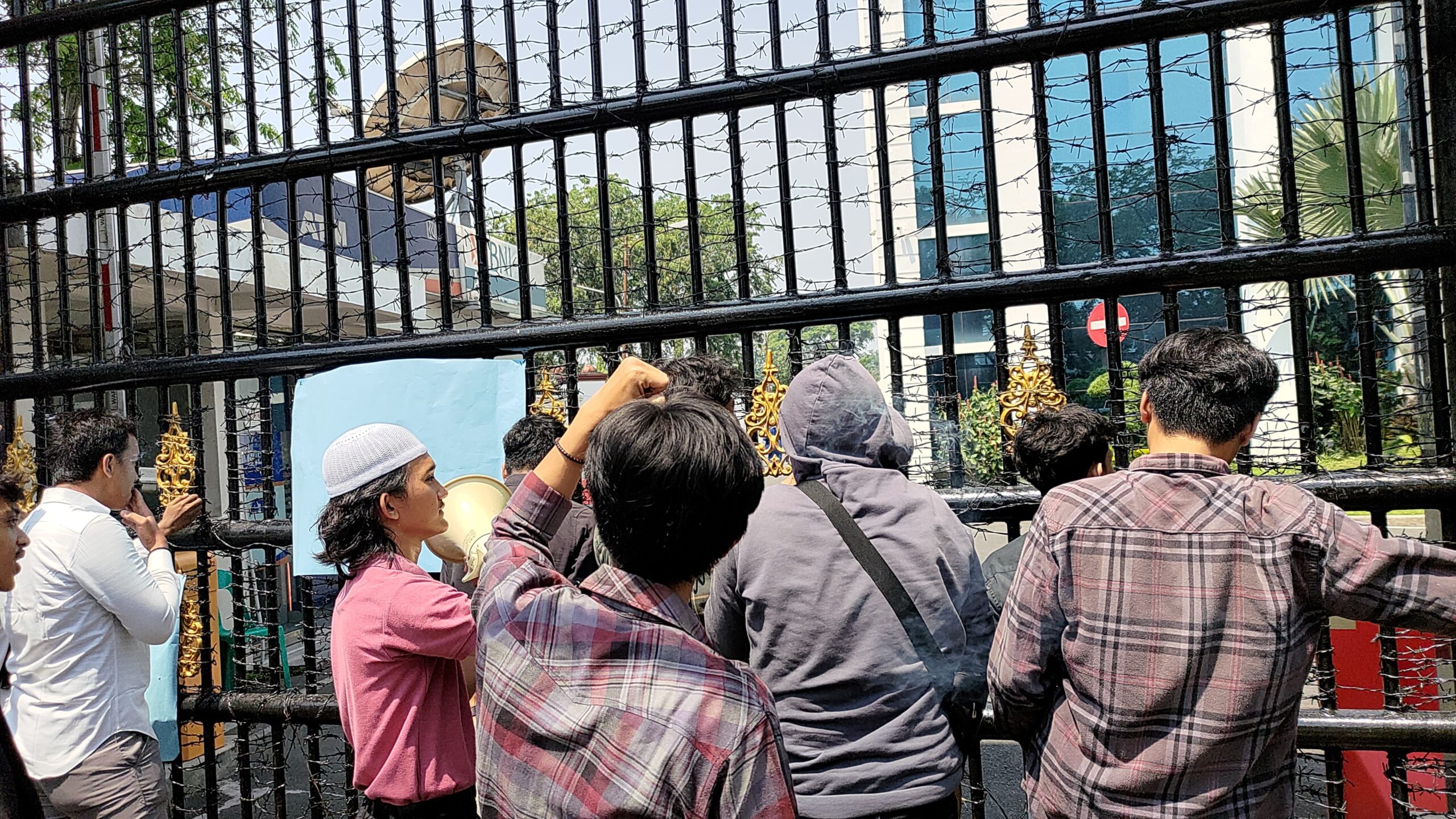 (Foto: Puluhan Mahasiswa yang tergabung dalam Lembaga Peduli Iklas Beramal (LPIB) melakukan unjukrasa di depan kantor Kejaksaan Tinggi Sumatera Utara, (Rabu, 25/6/2025).