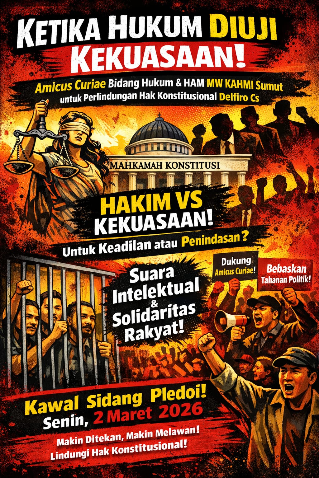 Akhirnya, ketika hukum diuji oleh kekuasaan, yang dipertaruhkan adalah kepercayaan publik terhadap sistem peradilan. Jika hukum berdiri tegak di atas prinsip konstitusi dan HAM, maka putusan—apa pun hasilnya—akan diterima sebagai keadilan. Namun jika hukum dipersepsikan tunduk pada kekuasaan, legitimasi negara hukum akan tergerus. Dalam konteks inilah amicus curiae MW KAHMI Sumut dapat menjadi suara nurani konstitusi: mengingatkan bahwa keadilan bukan hanya soal menghukum, tetapi memastikan hak asasi setiap warga negara terlindungi tanpa kecuali.