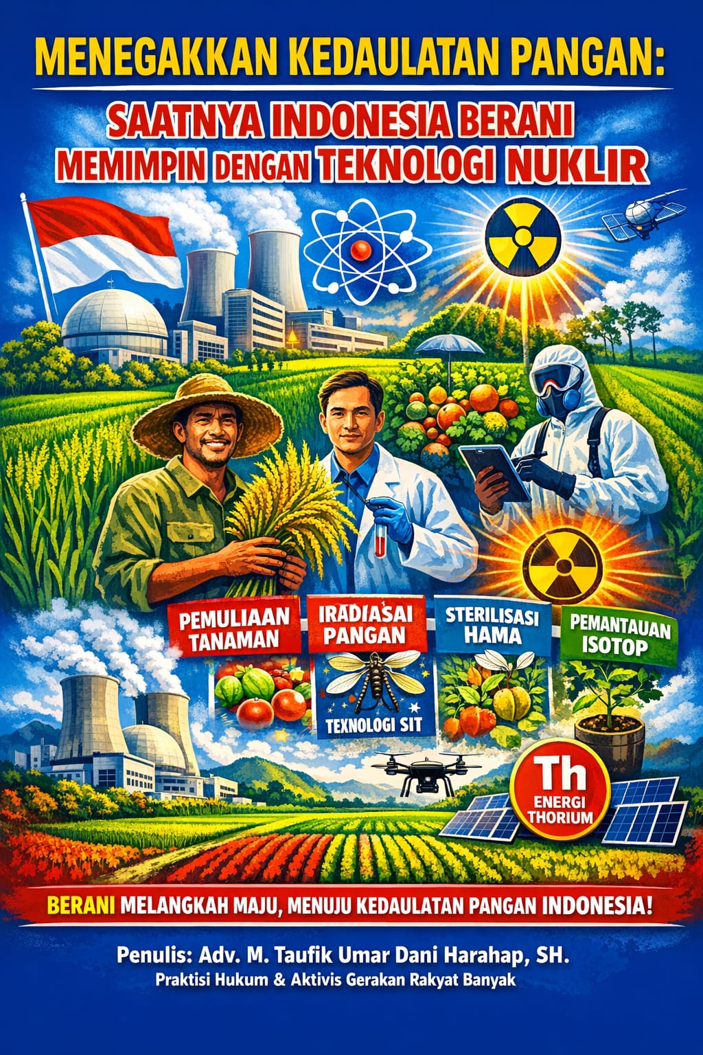 Pada akhirnya, teknologi nuklir untuk mewujudkan kehidupan masyarakat yang damai dan sejahtera melalui kedaulatan pangan pada akhirnya adalah soal keberanian mengambil pilihan strategis: terus bertahan dalam pola lama yang stagnan dan rentan krisis, atau melompat ke masa depan dengan inovasi berbasis sains yang terukur dan berdaulat. Dalam konteks ini, nuklir bukan sekadar isu energi atau teknologi tinggi, melainkan instrumen peradaban yang mampu meningkatkan produktivitas pertanian, menjamin keamanan pangan, serta menekan ketergantungan impor secara sistemik. Menolak pemanfaatannya atas dasar ketakutan yang tidak berbasis pengetahuan justru berpotensi memperpanjang ketertinggalan. Sebaliknya, dengan tata kelola yang transparan, regulasi ketat, dan keberpihakan pada riset nasional, teknologi nuklir dapat menjadi fondasi transformasi Indonesia dari sekadar negara agraris menjadi kekuatan pangan global yang kompetitif. Di titik itulah, kedaulatan pangan berhenti sebagai retorika politik, dan menjelma menjadi kenyataan historis yang dibangun di atas keberanian, ilmu pengetahuan, dan kepentingan rakyat.