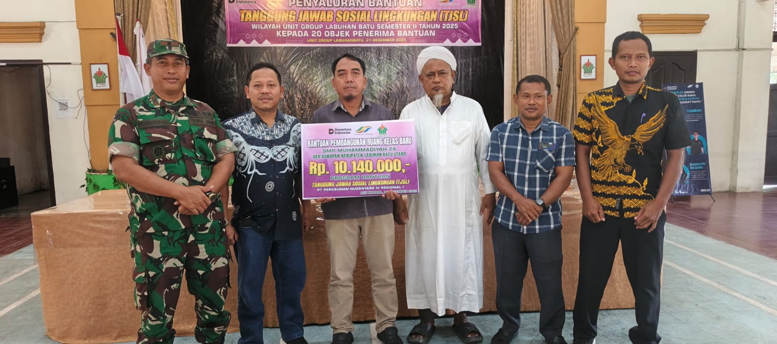 Labuhan Batu,Valito.co – PTPN IV Regional 1 menyalurkan bantuan Tanggung Jawab Sosial Lingkungan (TJSL) Semester II Tahun 2025 kepada 20 objek penerima bantuan di wilayah Group Labuhan Batu. Acara penyaluran bantuan ini diadakan di Aula Kebun Aek Nabara Utara, Rabu (31/12/2025).